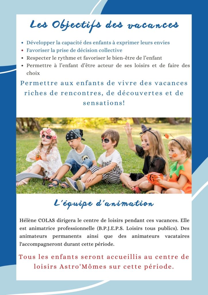 Contacts : Hélène COLAS, Directrice du centre de loisirs Astro’Mômes, ligne directe 02 99 69 35 28 – 07 61 71 49 53